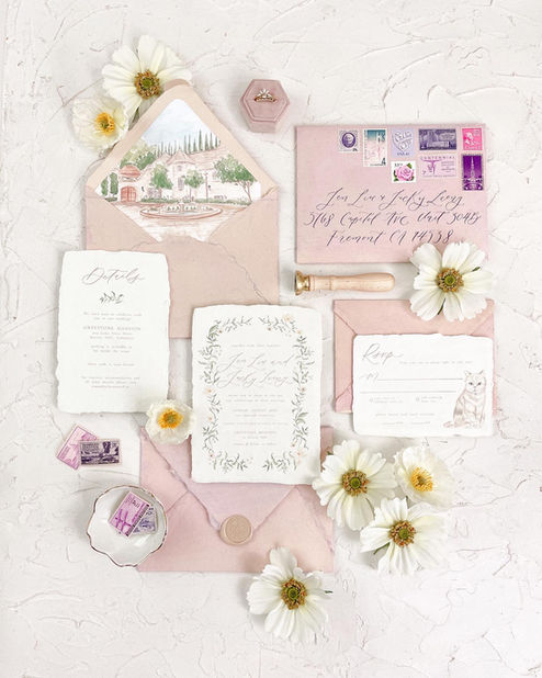 Let me illustrate and design something that celebrates your love story. I will work with you every step of the way to create invitations that you'll be eager to send to your guests. All the illustrations are hand painted and the script hand-written with care. Below are some of my favorite designs.
